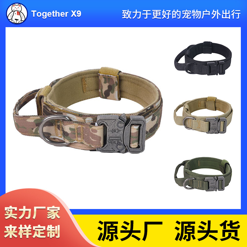 Pet Collar Outdoor Tactical Nylon Traction Rope Dog Collar Thickened Large Dog Collar in stock