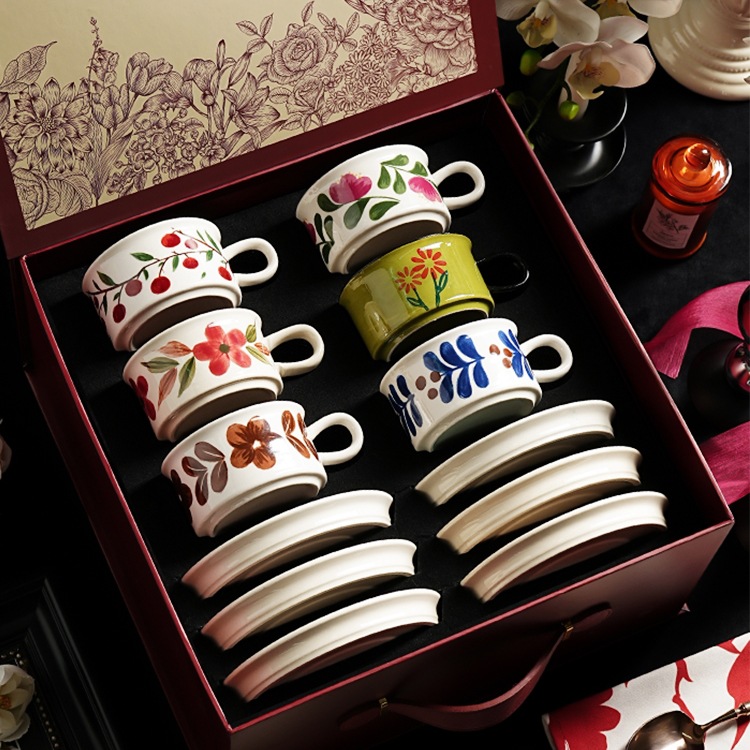 Coffee Cup, Light Luxury, High-Looking Ceramic Cup and Saucer Set, Wedding Gift, New Home Gift, Daily Kitchen and Drinking Utensils
