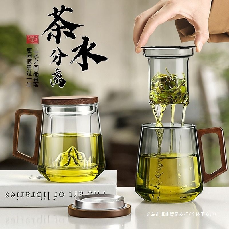 Tea Cup Tea Water Separation Cup Office Tea Drinking Men's Glass Tea Set Tea Cup Handle Daily Kitchen Utensils
