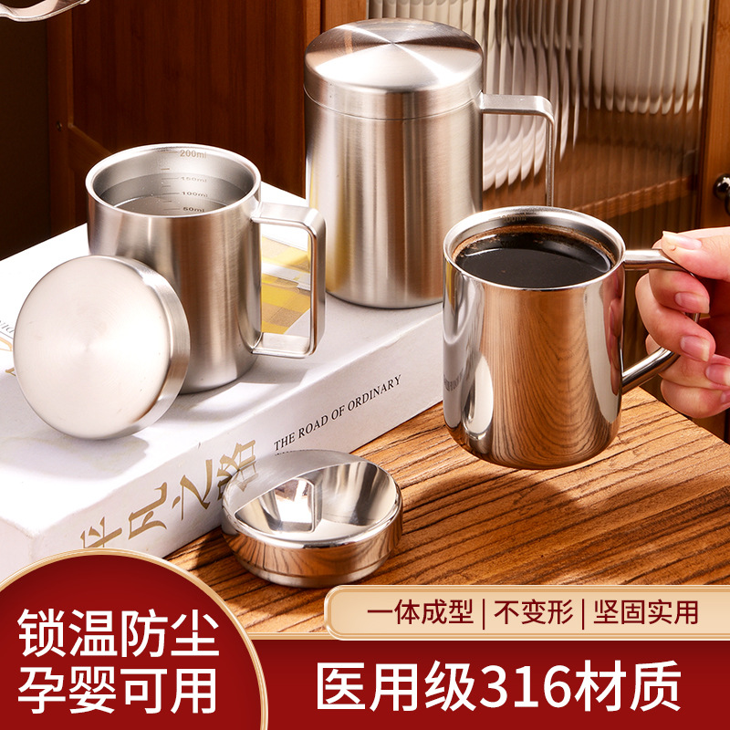 Factory Direct Customizable OEM Double Layer Mug with Lid Home Office Student Drinking 304 Double Layer Water Cup