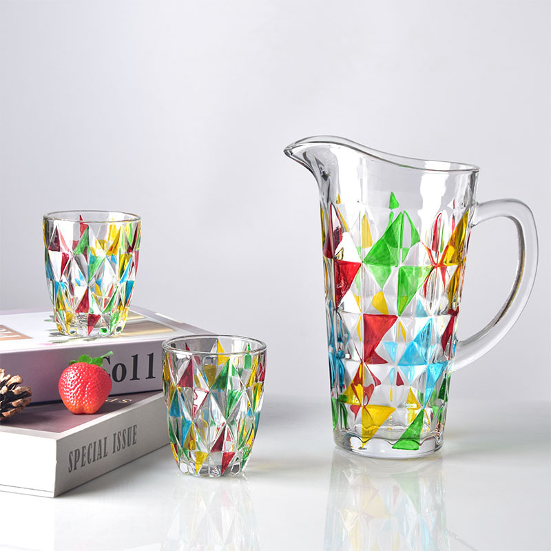 Home Light Luxury Water Set Crystal Glass Color Hand-painted Heat-resistant Water Cup Kettle Large Capacity Fruit Tea Drinking Set