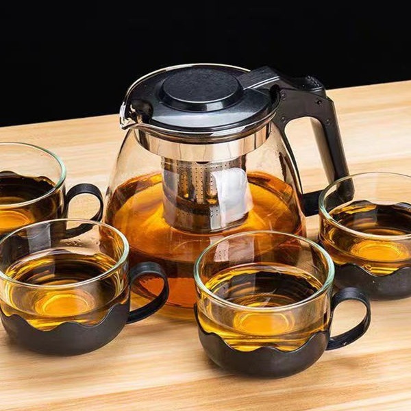Daily Kitchen Utensils, Tea Set, One Pot, Four Cups, Transparent Household Heat-Resistant Water Set with Lid, Kung Fu Teapot