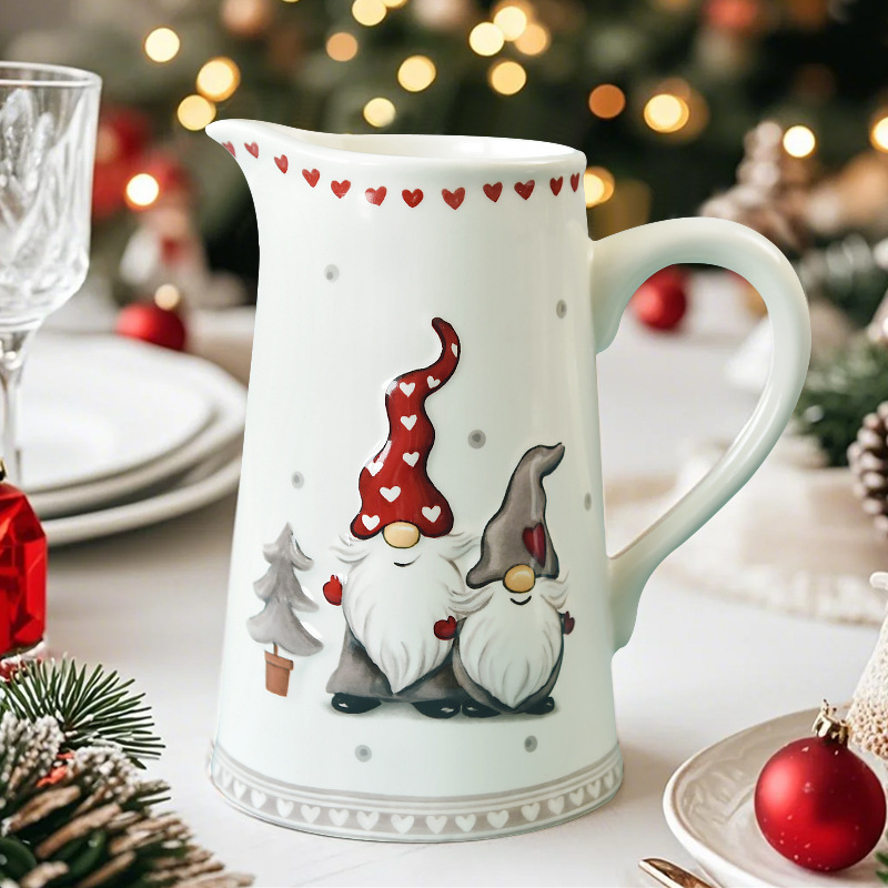 Creative Christmas Cold Water Kettle suit Nordic Large Capacity Ceramic Cold Water Kettle without Cover with Handle Relief Household Drinking Utensils
