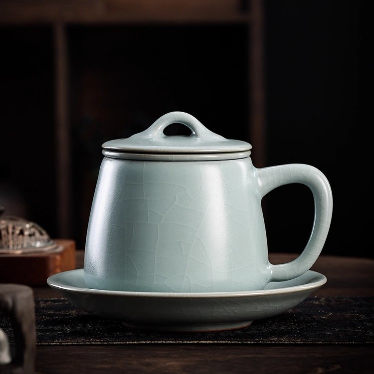 Daily Drinkware Taiwan Fengzi Ru Kiln [Stone Jug Office Cup] Leader Cup with Open Crack, Can Be Used for Tea and Water Separation with Lid