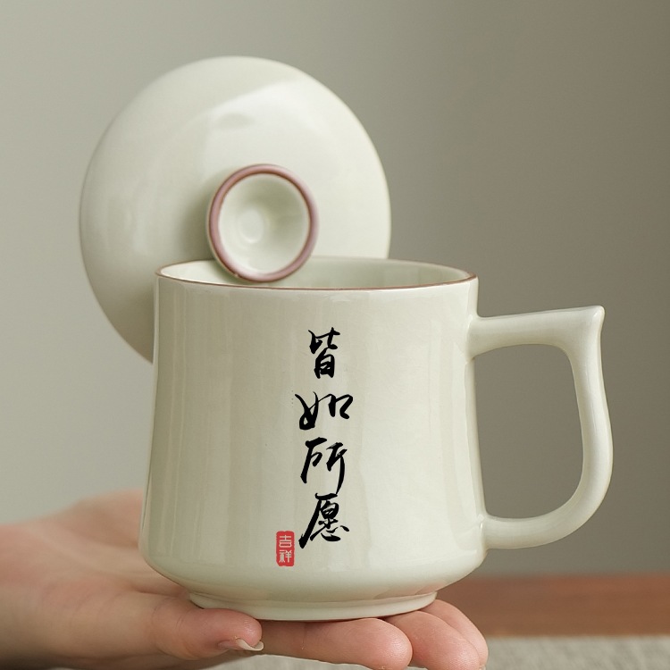 Ruyao Tea Cup Ceramic Office Mug Large Capacity Personal Cup with Lid Water Cup Gift Box Daily Kitchen Drinkware