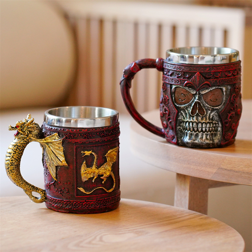 New Red Skull Knight Mug Stainless Steel Liner Three-dimensional Wolf Head Dragon Water Cup Cross-border Export Drinking Utensils