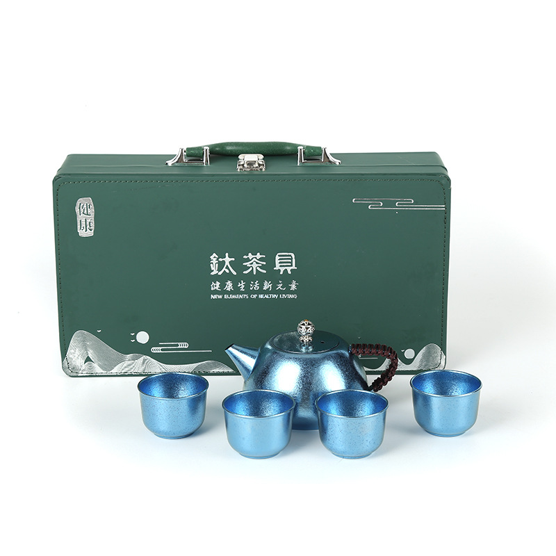 Titanium teapot titanium tea set suit wholesale kung fu tea set hand gift high-end outdoor kettle factory direct supply drinkware