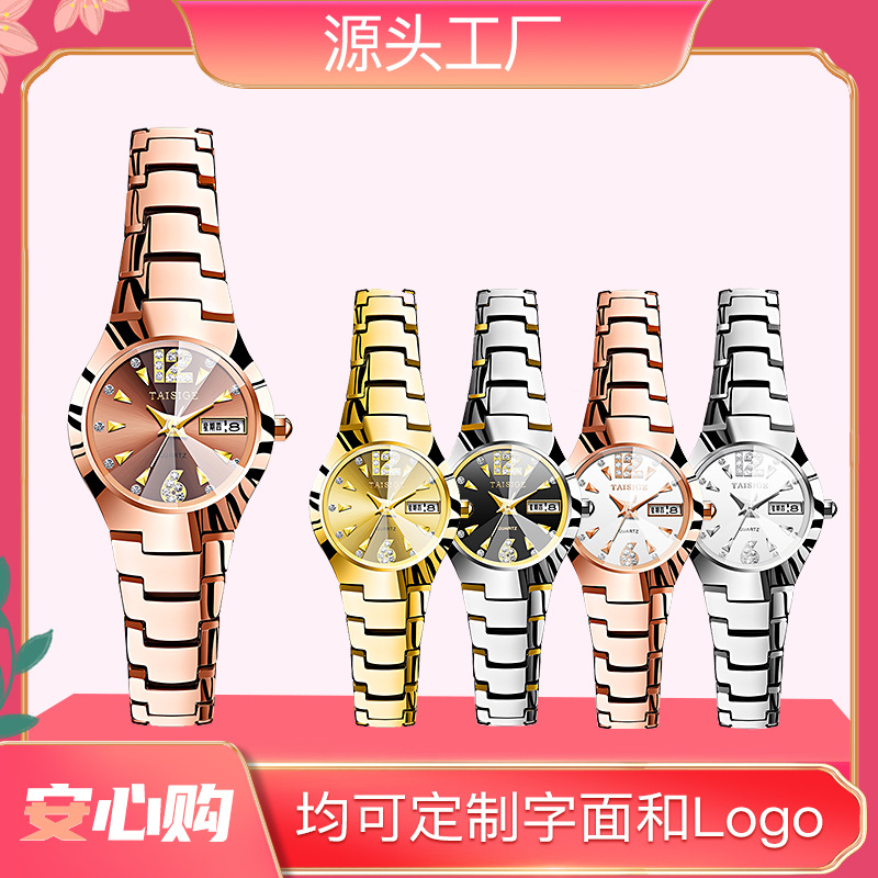 Swiss brand new waterproof luminous double calendar Women's Watch quartz watch live broadcast foreign trade popular one-piece delivery