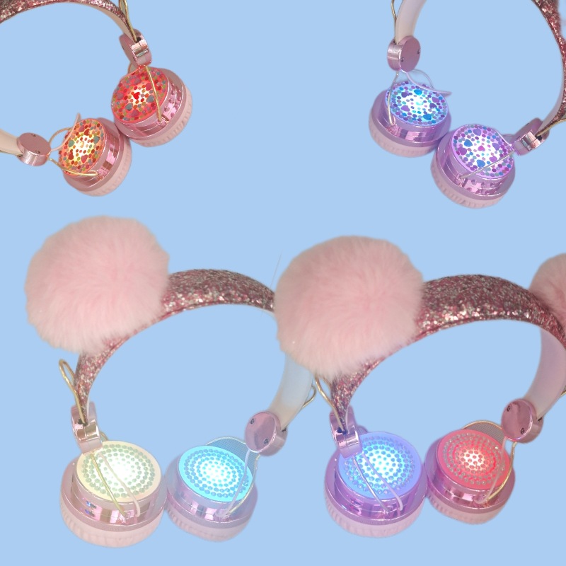 Source manufacturers in stock wholesale head-mounted explosions fur ball cartoon unicorn luminous wireless bluetooth headset