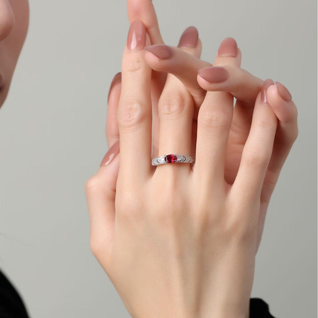 0.6ct Cultivated Ruby Lace Simple Ring Temperament Engagement Ring for Women s925 Sterling Silver Commuter All-match