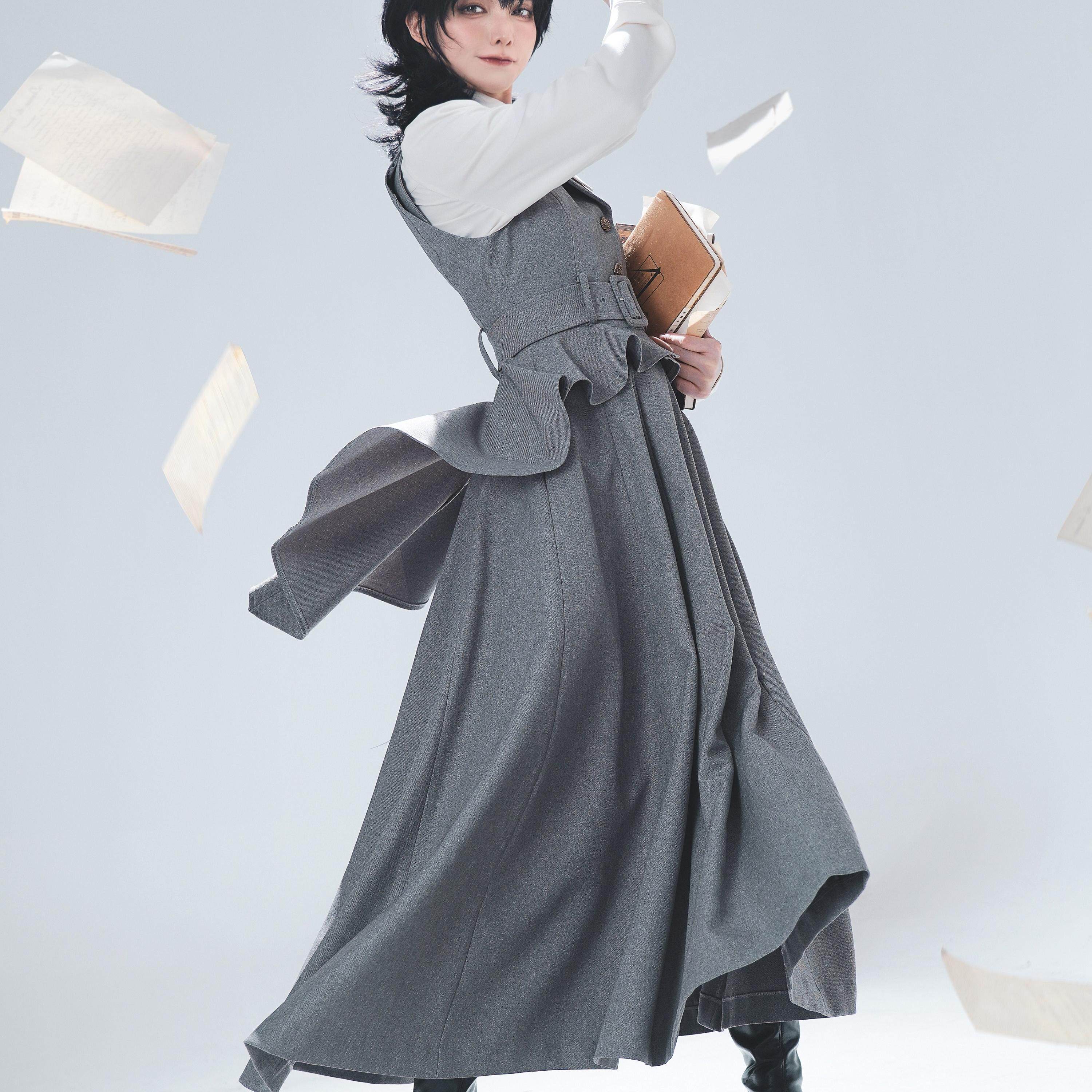 Ministry of Magic Commuting·Trailing Vest + Ten-Piece High-Waisted Umbrella Skirt·Autumn and Winter Retro Frogic Original Design