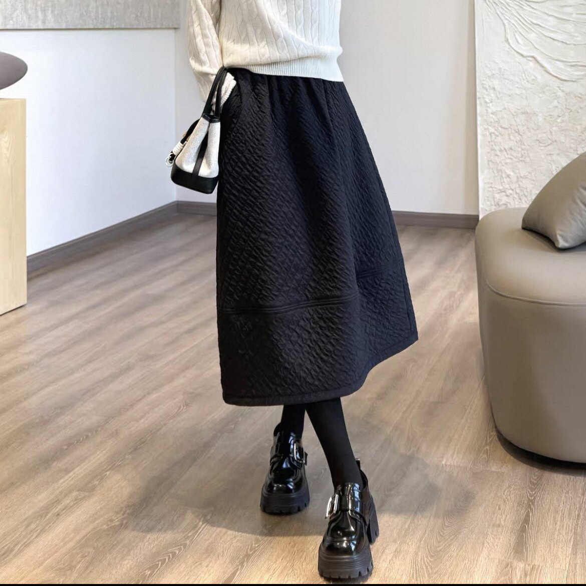Elegant Style [Original] Ultrasonic Fleece-Lined Hepburn Dress Winter Quilted Fleece-Lined Casual Little Black Dress Bubble Skirt