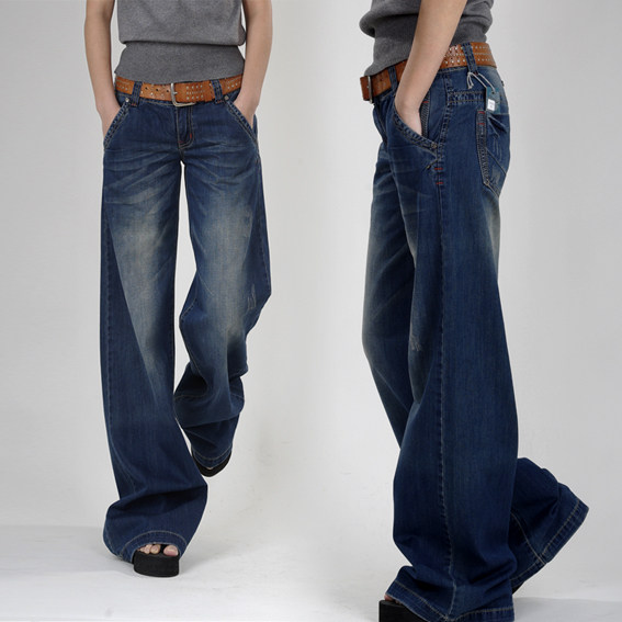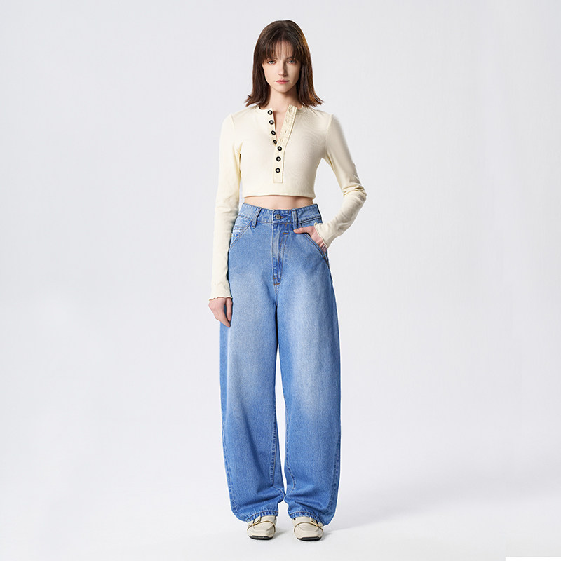 129-68 Low-Waist Jeans, Blue Washed Wide-Leg Pants, Wide-Leg Pants, Baggy Pants, Suitable for Summer, Thin Long Pants