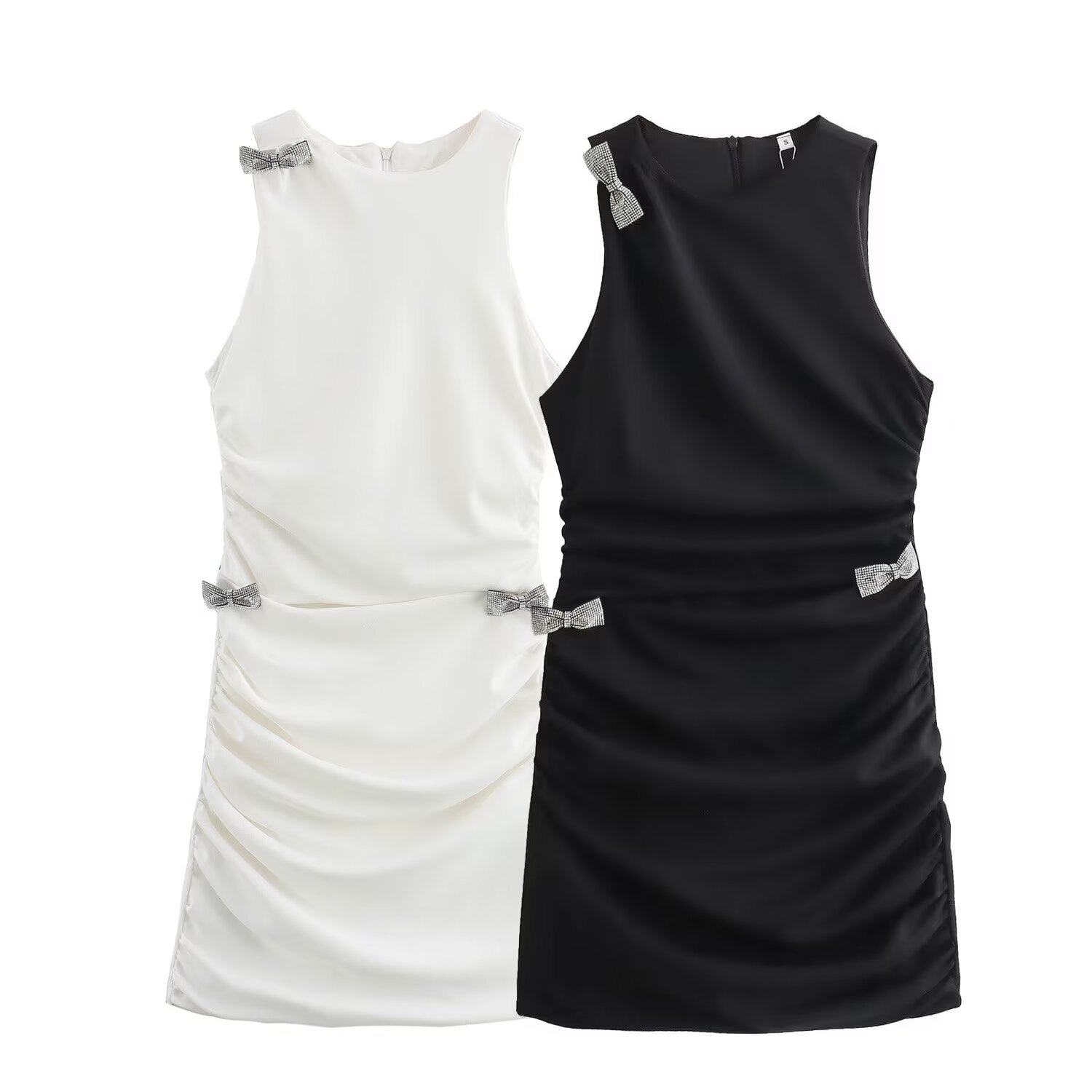 dress European and American style foreign trade women's new 2025 jewelry bow decoration open design temperament casual skirt