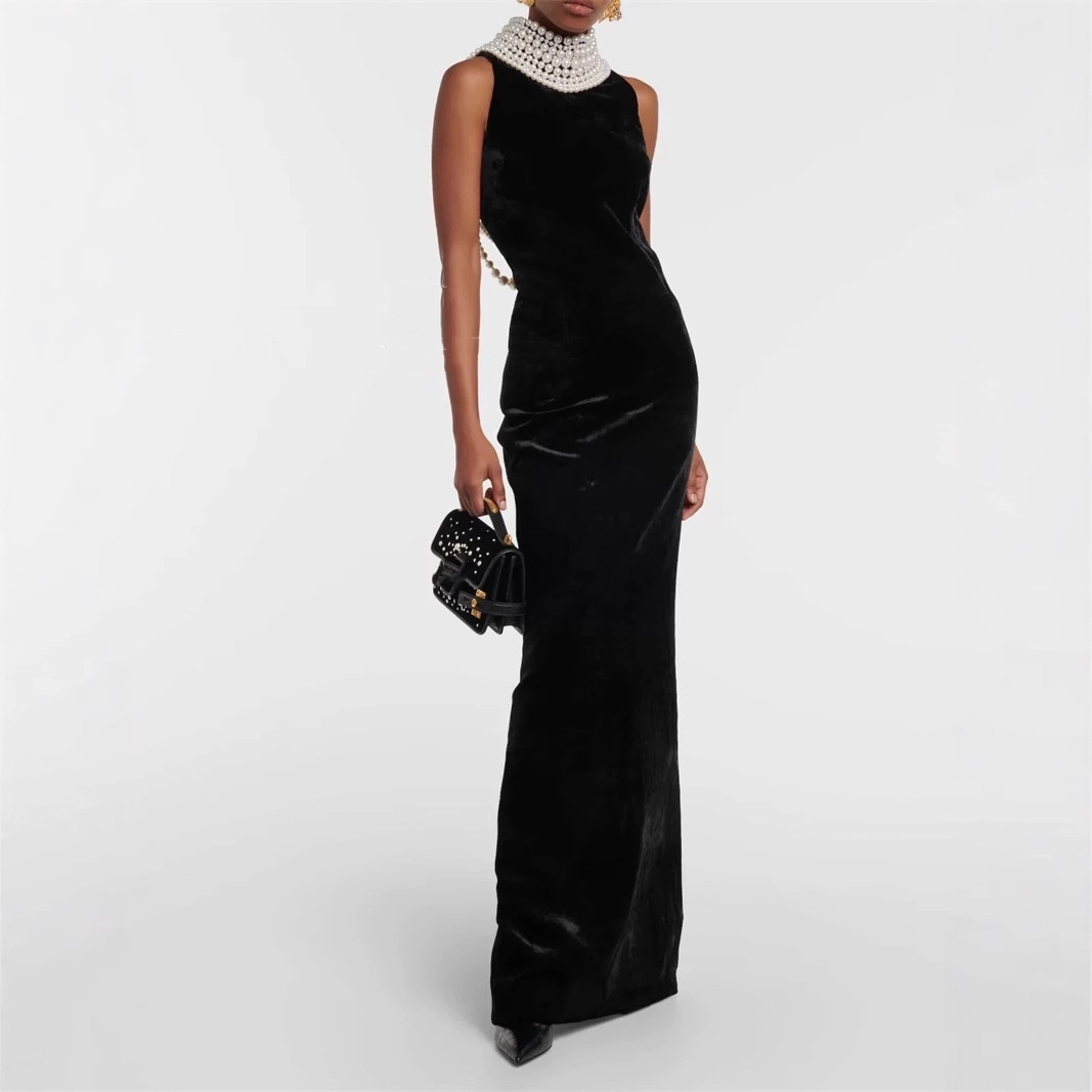 24 Autumn and Winter Bajia Fashion Sexy Design Knitted Neck Necklace Large Backless Velvet Dress Dress