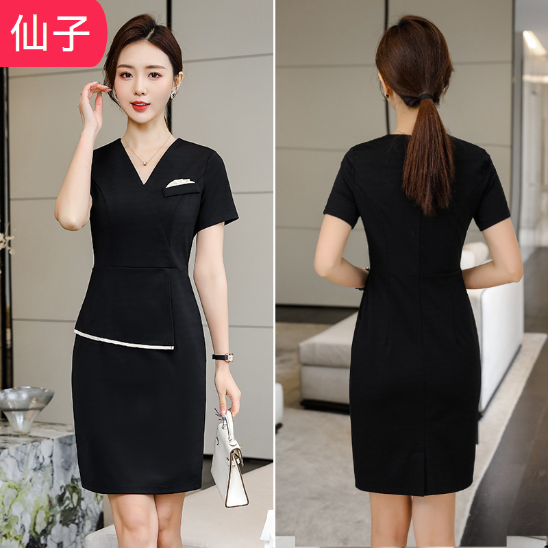 Professional dress V-neck short sleeve fashion temperament goddess fan jewelry shop beauty salon front desk work clothes dress