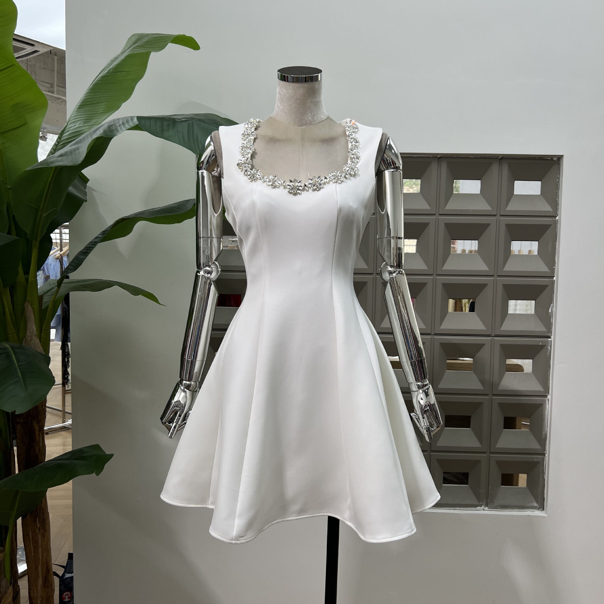 Amazon French Elegant Style Fashionable Diamond Square Neck Sleeveless Waist A-Line Dress for Small People to Look Slimmer