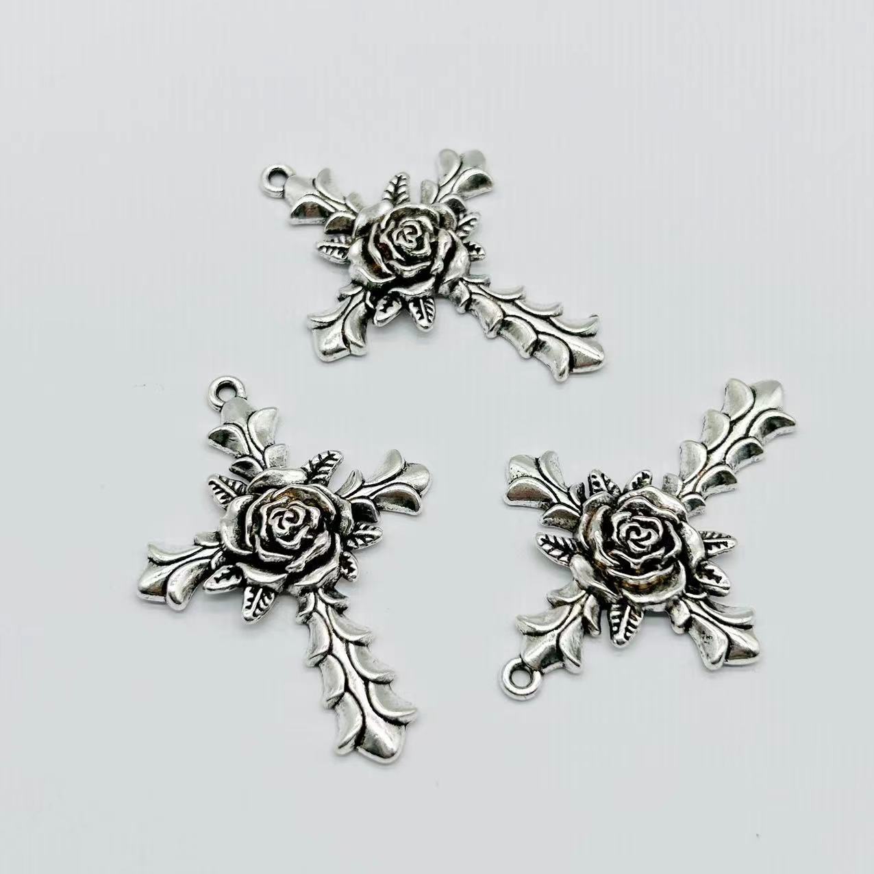 European and American personality retro clothing accessories cross rose pendant accessories pendant diy cross-border Amazon wholesale