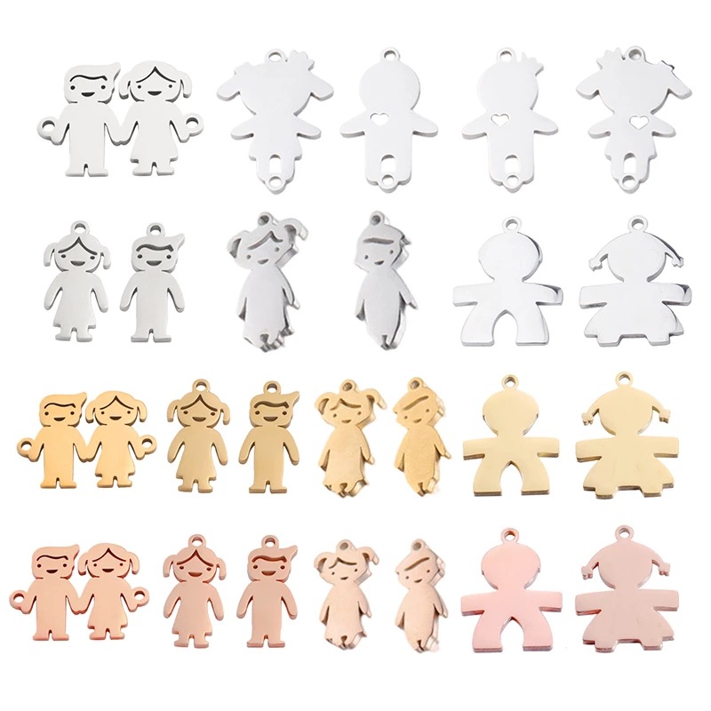 Cross-border Hot Sale Mirror Stainless Steel Boy Girl Couple Jewelry Accessories DIY People Shape Series Personalized Pendant