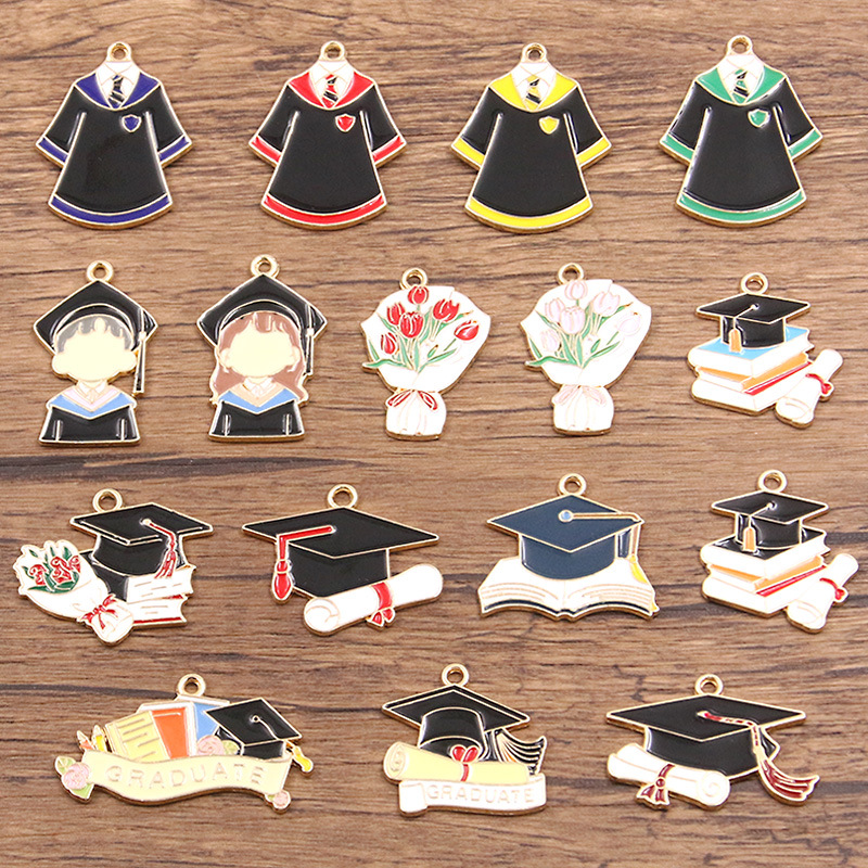 A Variety of European and American Cross-Border Personalized Alloy Jewelry Accessories, Graduation Season Charm, Doctor's Hat, Flowers, Exam Paper Pendant Charms