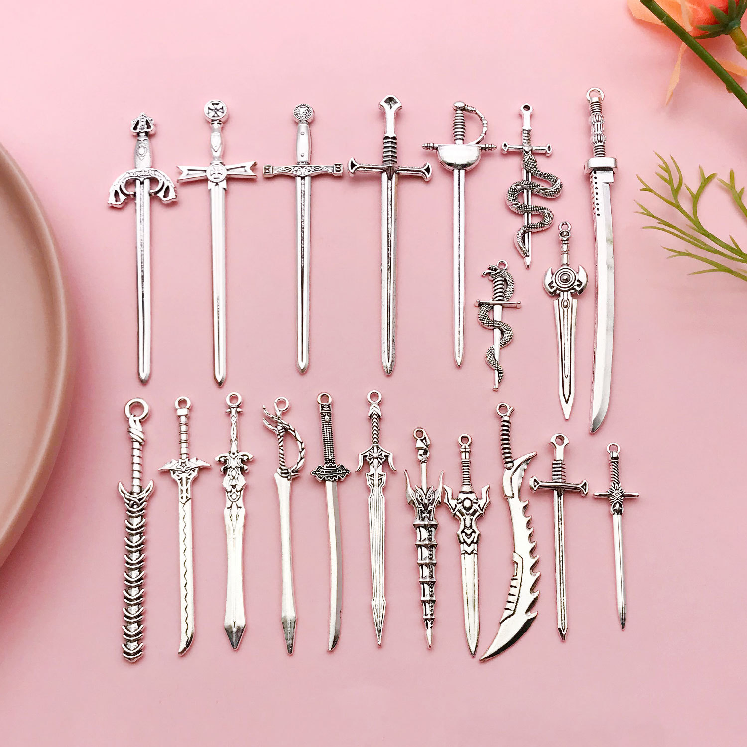 Cross-border Europe and the United States new personality simulation ancient silver sword pendant pendant diy handmade bookmark alloy accessories material