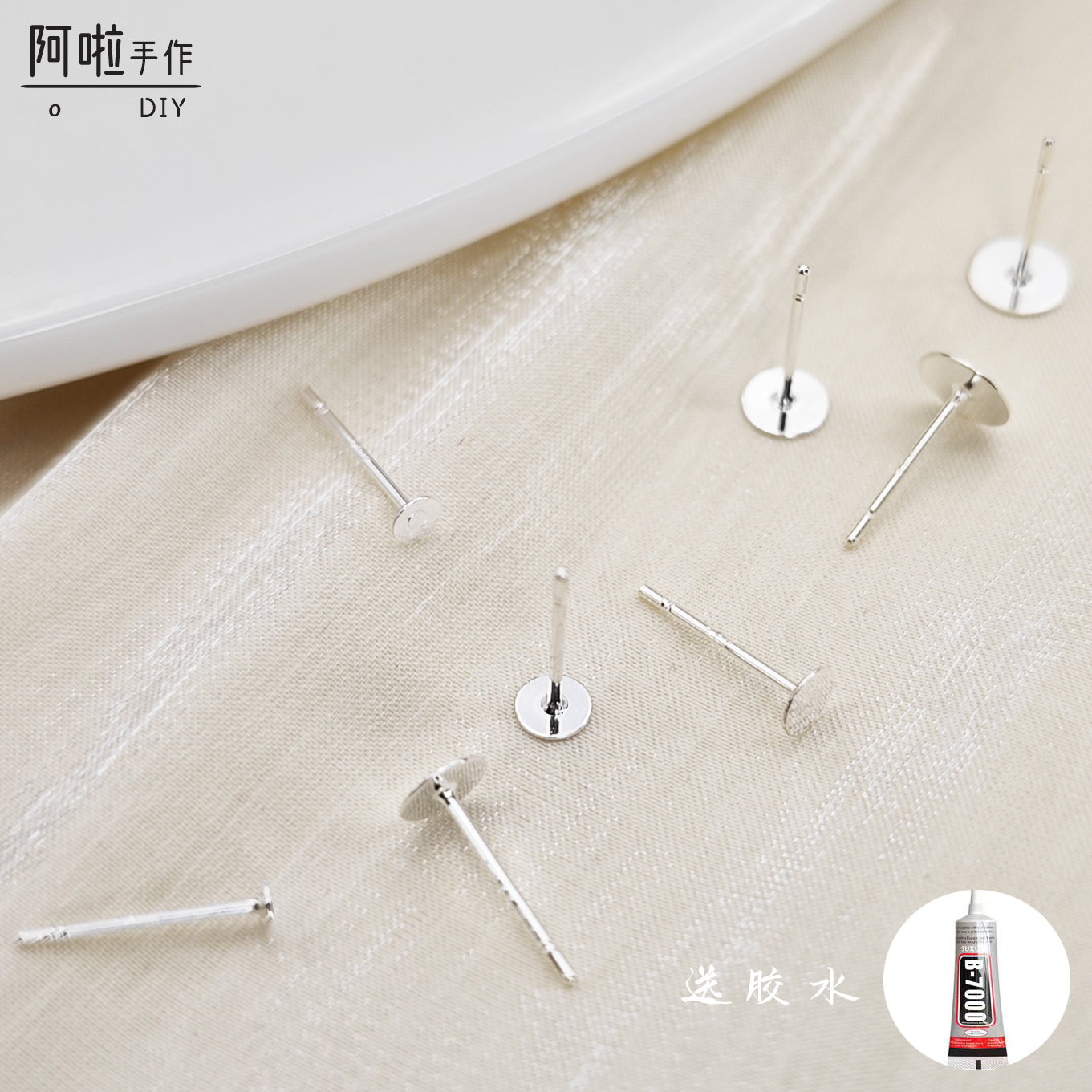 Flat Empty Base Engraved 925 Silver Ear Studs Copper Plated with Silver Anti-Allergy Flat Head Flat Bottom Adhesive Ear Studs Handmade DIY Accessory Materials