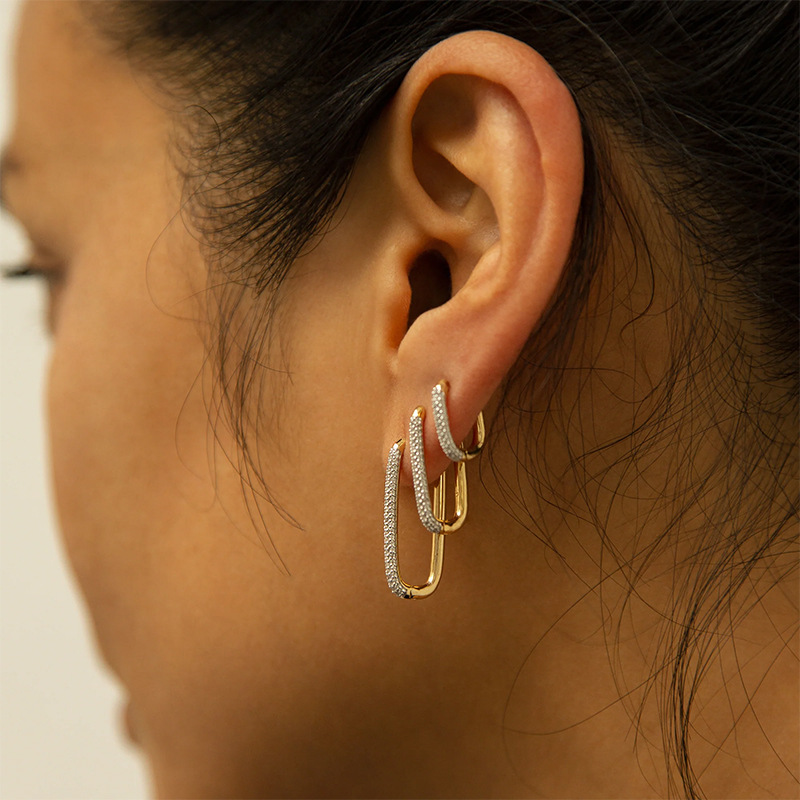 Tiktok Trending Ultra-Shiny Zircon Earrings for Women, Light Luxury Niche High-End Hoop Earrings, Sweet and Cool Internet Celebrity Exquisite Ear Clips