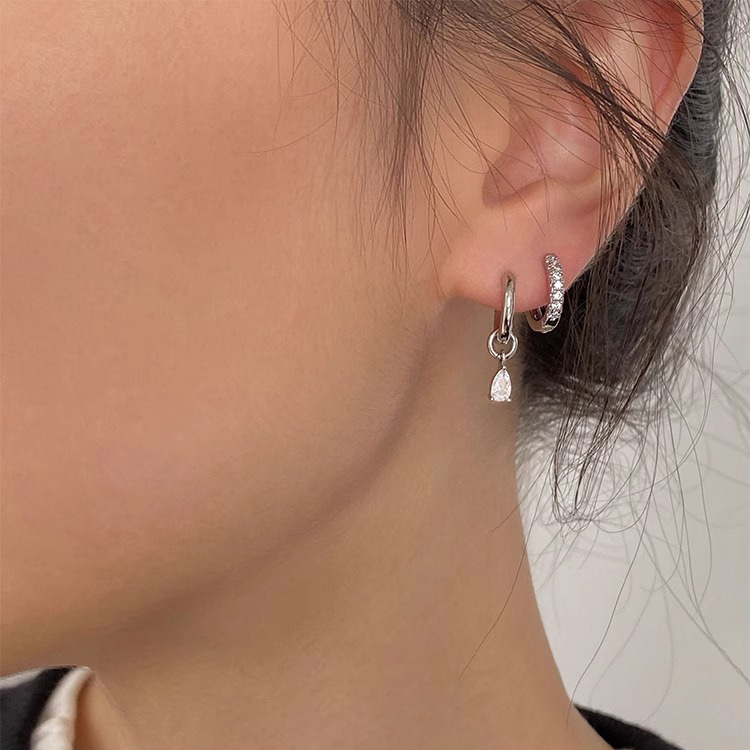 Retro Simple Micro-inlaid Ear Buckle Asymmetrical Water Drop Zircon Small Ear Ring Two-wear Simple Personality Exquisite All-match Earrings