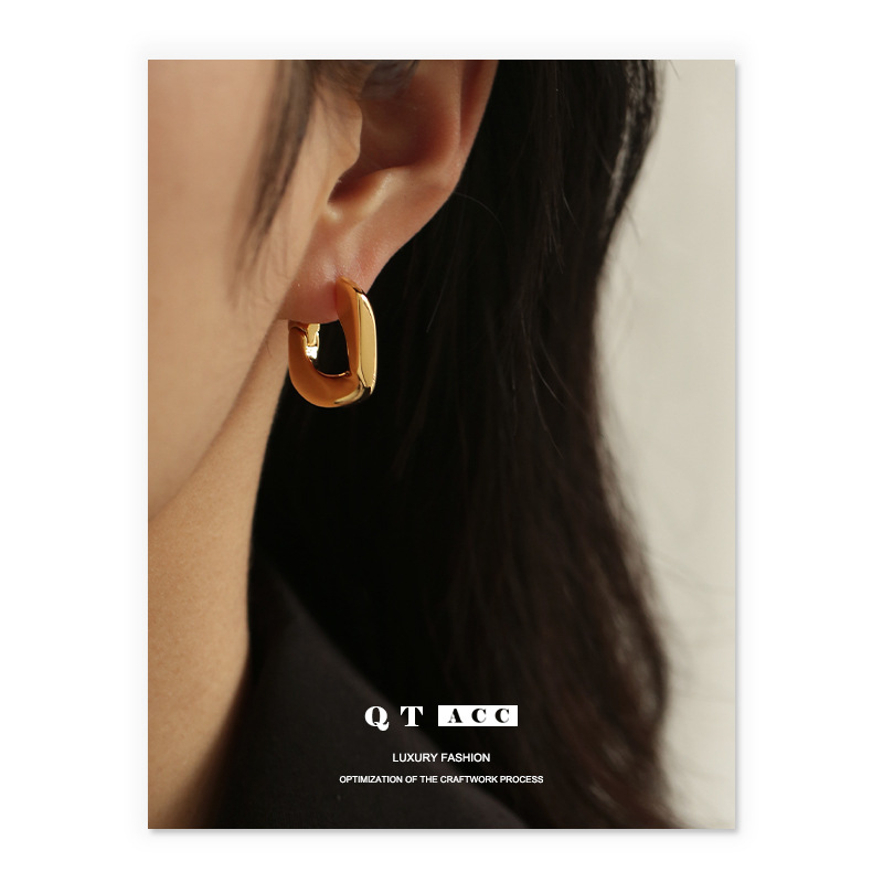 Brass Plated 18K Real Gold ins Basic Commuting Simple Niche Exquisite Gloss Metal Small Ear Buckle Earrings for Women