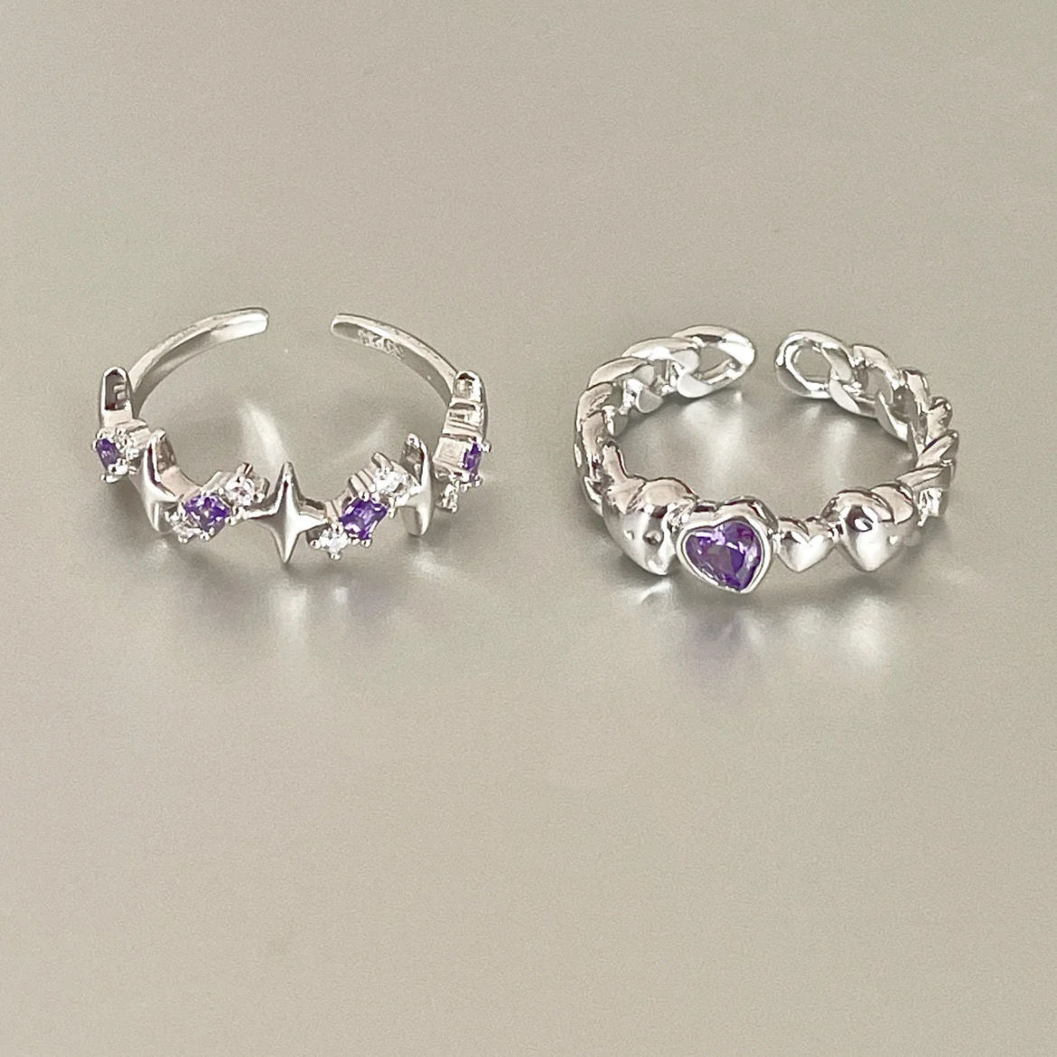 Sweet Style Fashion Purple Love Ring Niche Design High-end All-match Ins Style Exquisite Women's Ring Jewelry