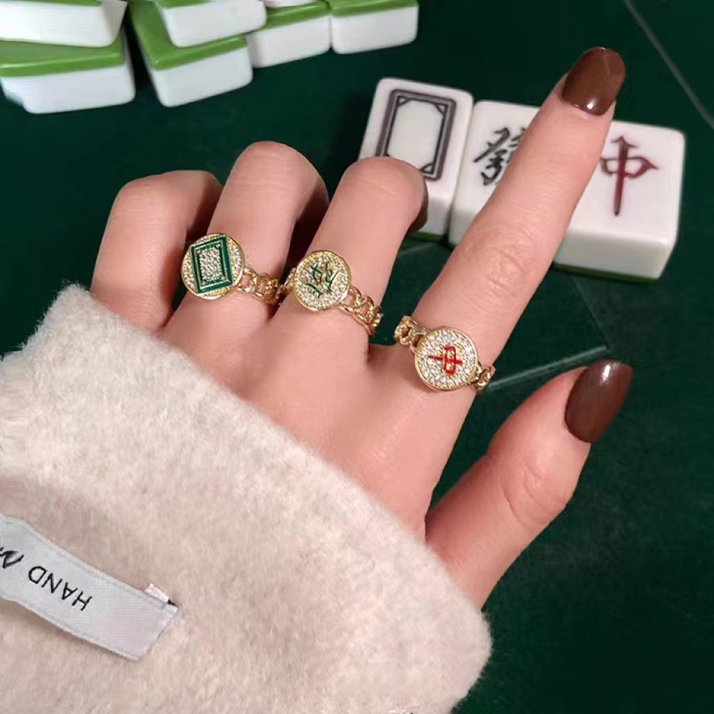 Fortune Mahjong New Chinoiserie Ring Full of Diamonds Accessible Luxury Exquisite Ins Niche Design High-End Versatile Ring