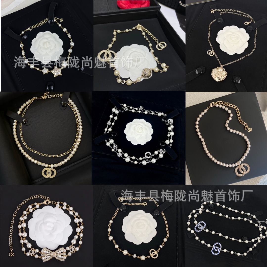 New Artificial Pearl Double Layer Stacked Necklace Cross-border Exquisite Fashion Clavicle Chain French Elegant Light Luxury Woolen Chain