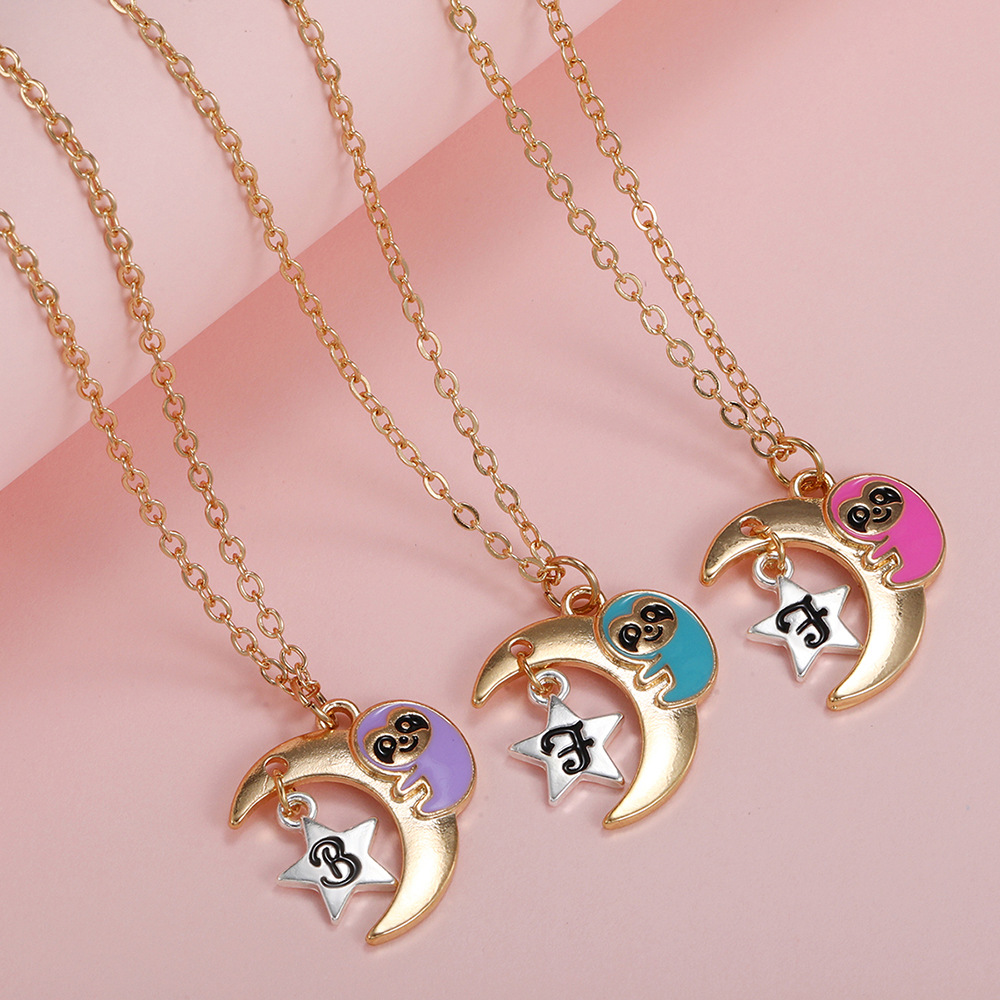 Cross-border hot sale cute exquisite good friend BFF Moon star sloth children's necklace pendant 3 pieces suit gifts