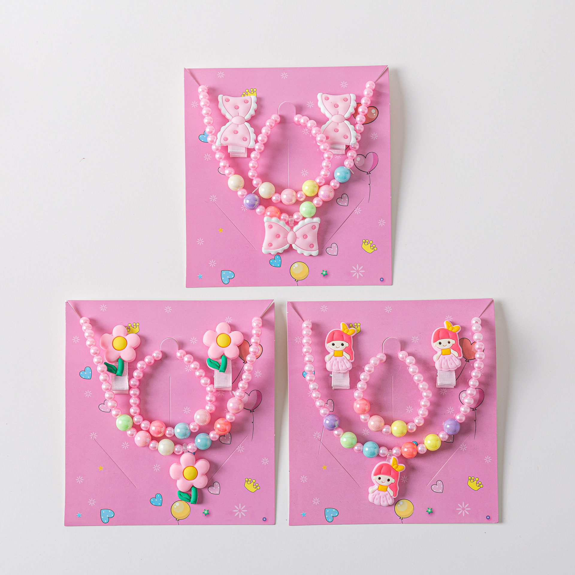 Cross-border Hot-selling Cute Cartoon Children Necklace Sweet Princess Hairpin Girls Baby Exquisite Bracelet Three-piece Set