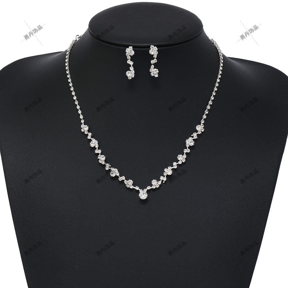 Cross-Border Hot Selling Exquisite Fashion Bridal Necklace Earrings Set Women's Jewelry Set Wedding Banquet Dress Accessories