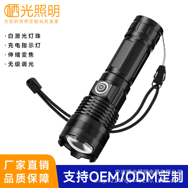 Qiguang Cross-Border New White Laser Zoom Aluminum Alloy Flashlight Long-Range Rechargeable Portable Outdoor Emergency Strong Light Flashlight