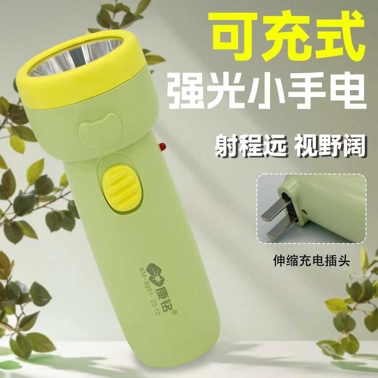 Kangming Flashlight Strong Light, Long Battery Life, Rechargeable, Children's Outdoor Household Small Portable Super Bright Wholesale