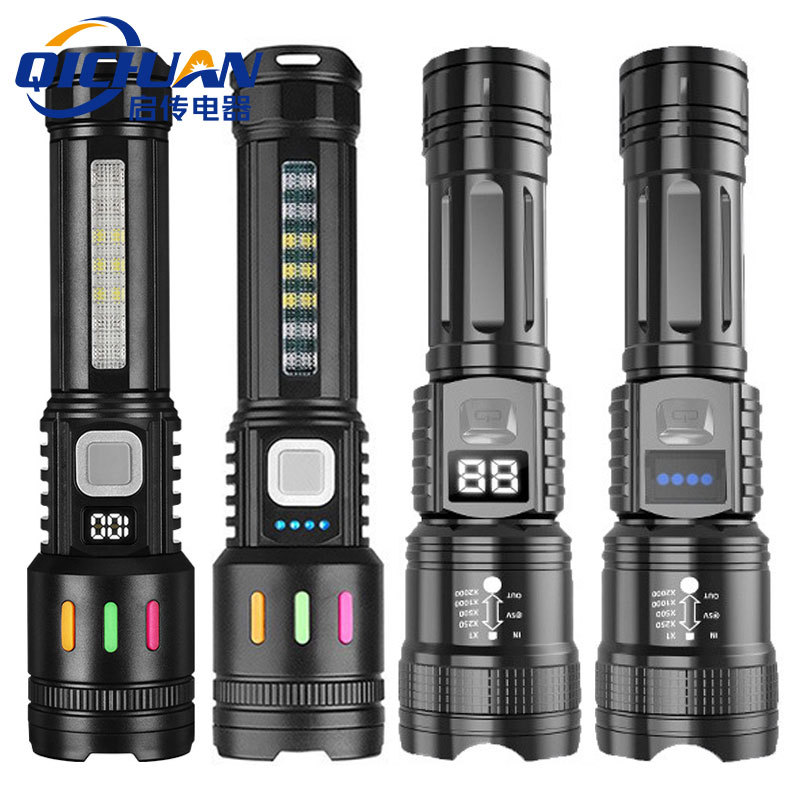 Cross-Border Multifunctional Strong Light Flashlight Digital Electric Display Zoom Emergency Flashlight Outdoor Rechargeable Long-Range Portable Flashlight