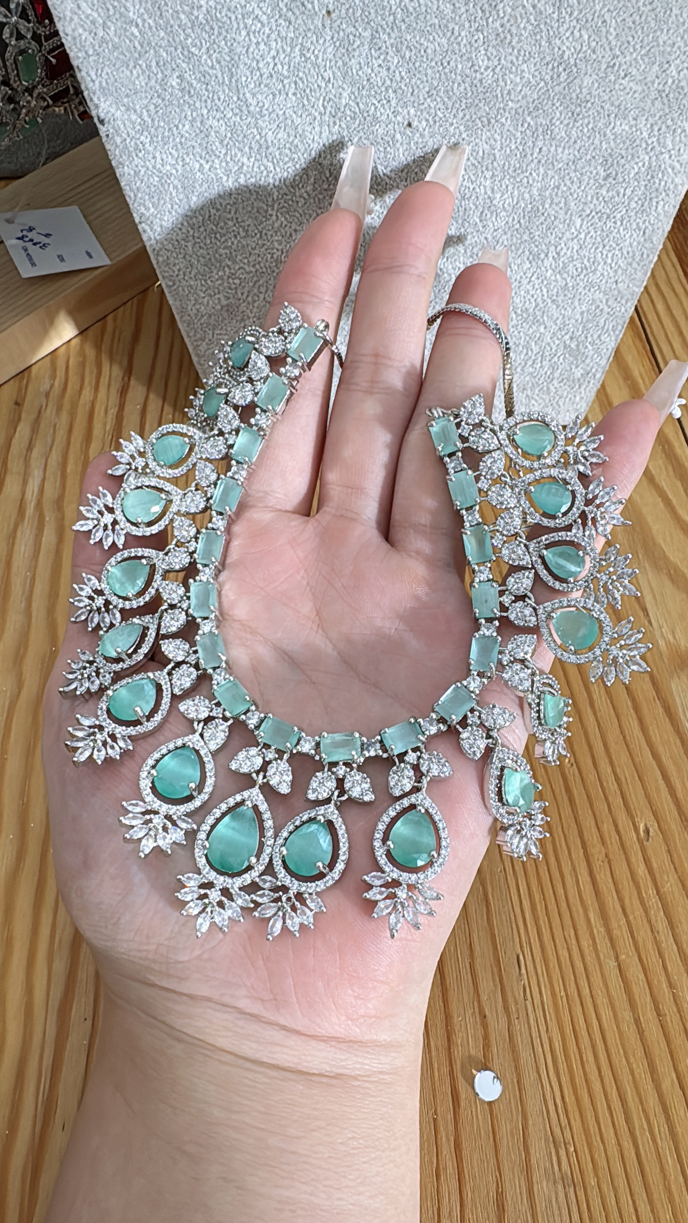 Duos "green moissanite" earrings + necklace + ring 925 silver