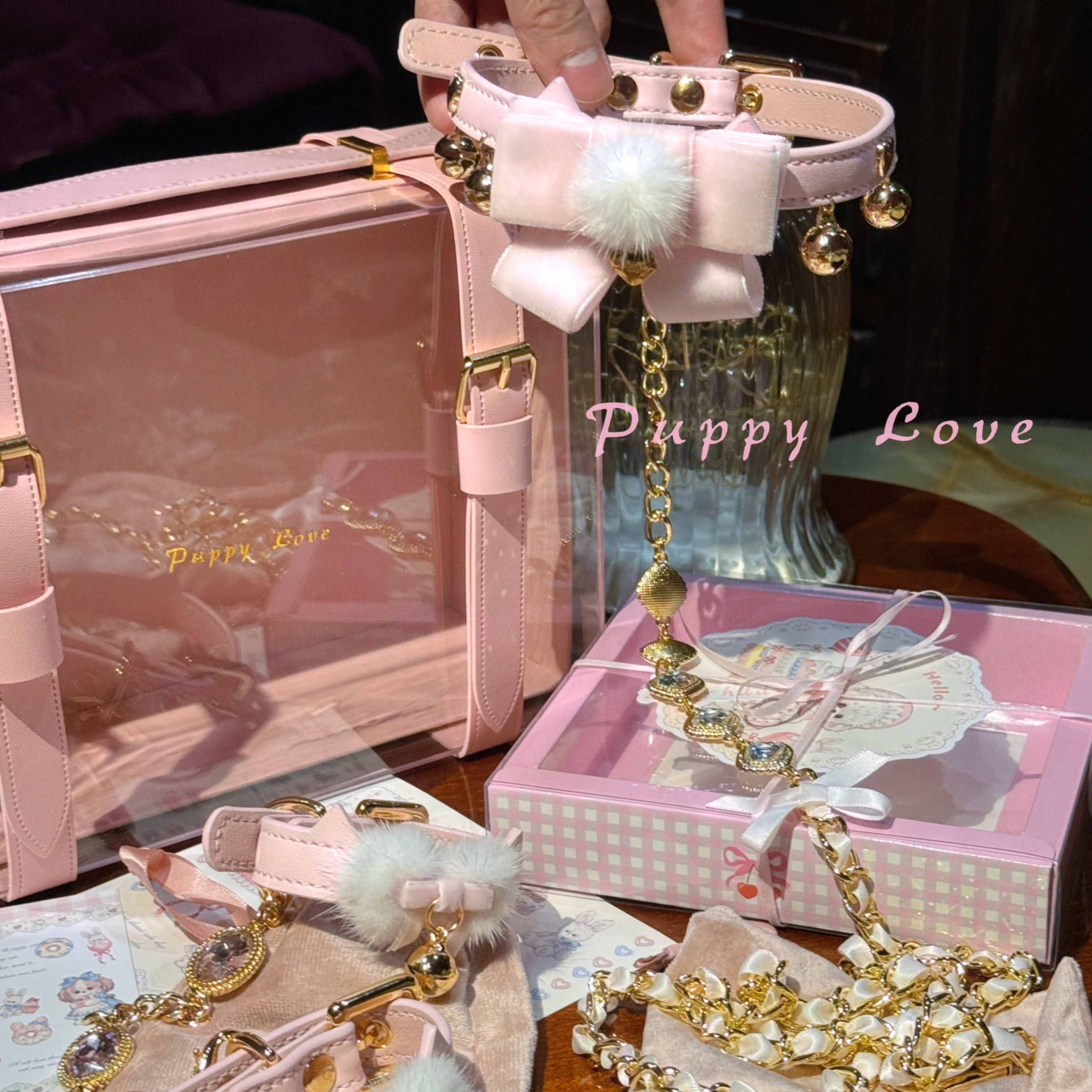 Puppy Love velvet snow catcher mink fur leather collar traction choker bracelet Suit