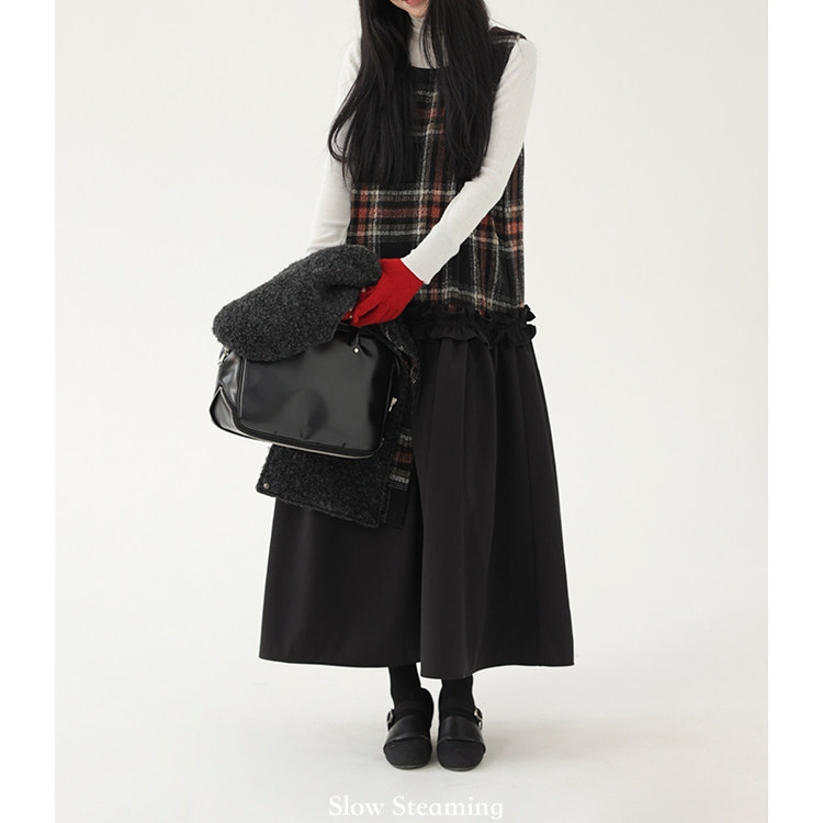 Slowsteaming "Christmas Special Edition" Ruffled Round-Neck Japanese-Style Wool Plaid Dress Autumn and Winter Dress