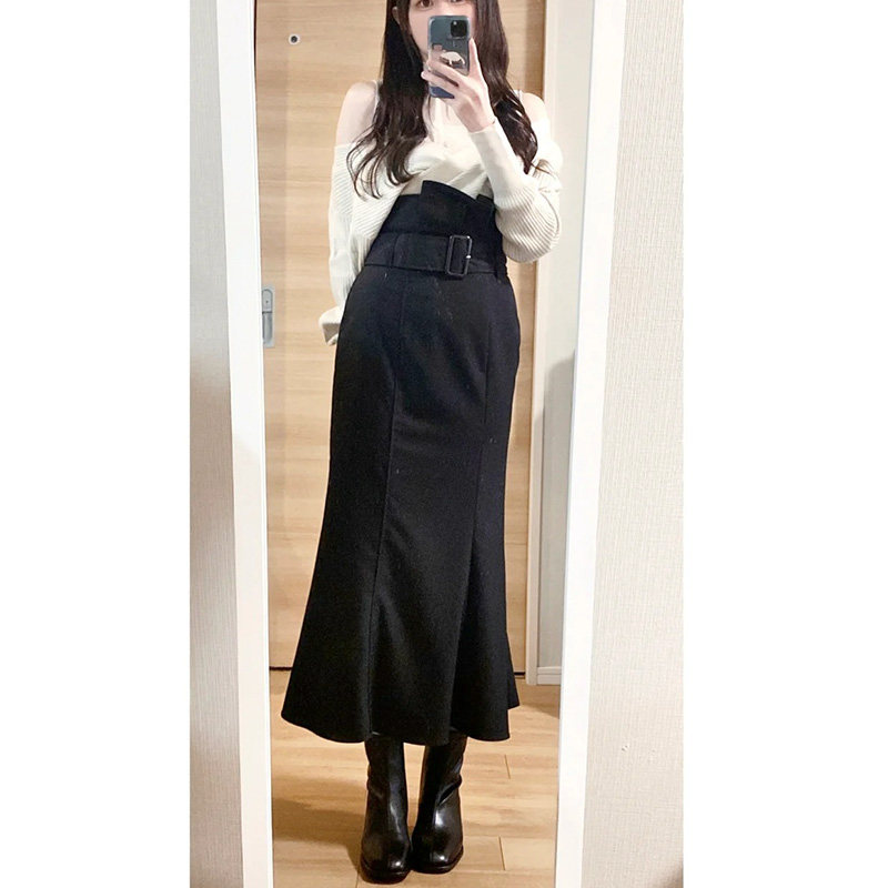 Small Puff Japanese Style Spring and Autumn New Women's Clothing Elegant High-Waisted Ruffled Fishtail Midi Skirt Long Skirt for Women with Belt