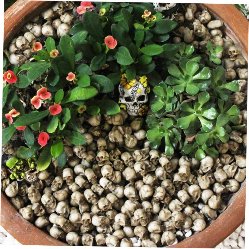 Halloween Flower Pots Decorated with Skull Resin Ornaments