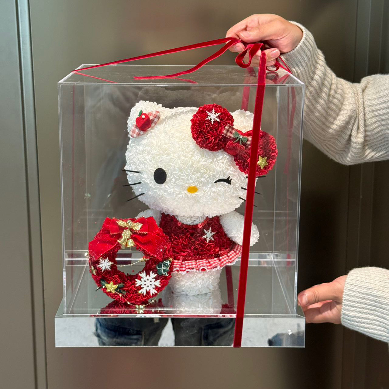 Hello Kitty Eternal Flower Doll Christmas Themed Red and White Decorative Ornament as a Christmas Gift for Girlfriend or Friend