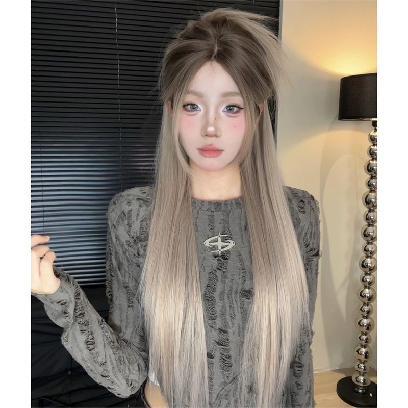 Bully Wig Linen Gold Mesh Long Straight Hair Fashionable Natural Cyber Celebrity Atmosphere Front Lace Daily Full Head Cover