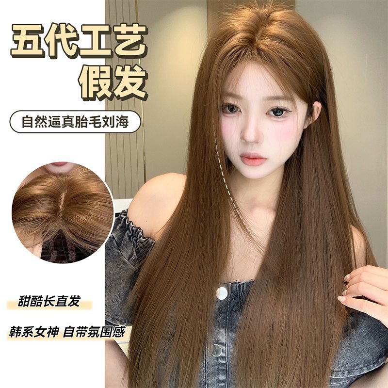Ziqi Wig Daily Internet Red Women's Mid-point Honey Tea Warm Brown Long Straight Hair Natural New Style Face Repair Internet Red Full Head Cover