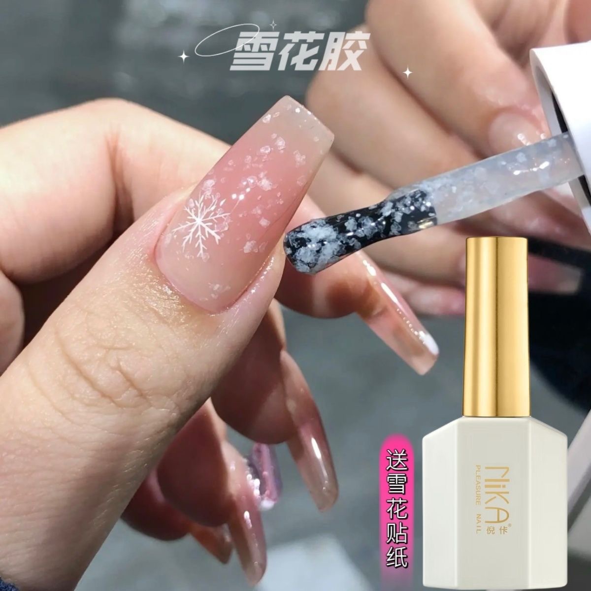 New snowflake fragment glue Net red bright surface autumn and winter versatile Christmas gel sealing layer Nail Polish glue phototherapy glue for nail salon