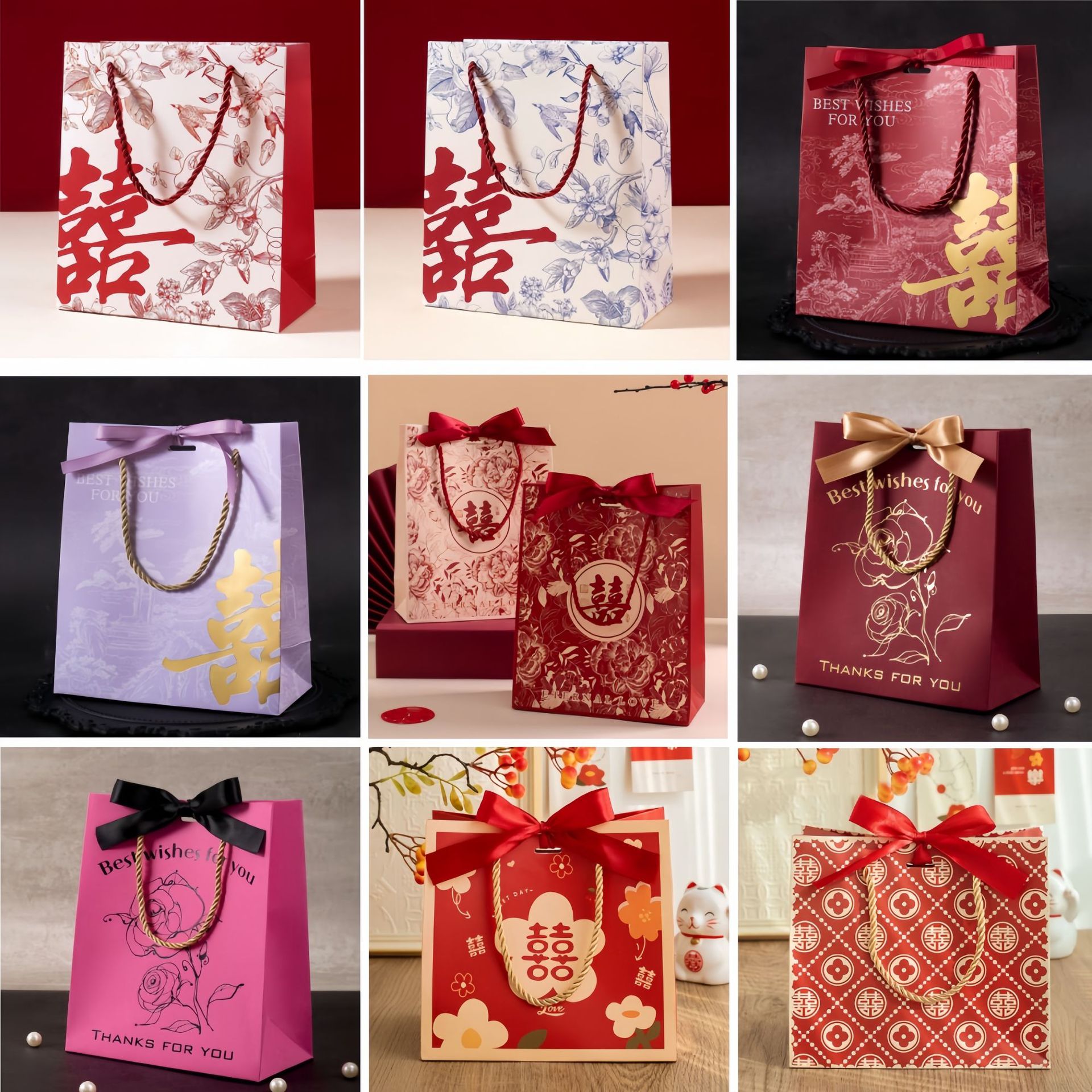 Red festive gift bag wedding ribbon portable box thin strip packaging candy wedding birthday gift bag texture