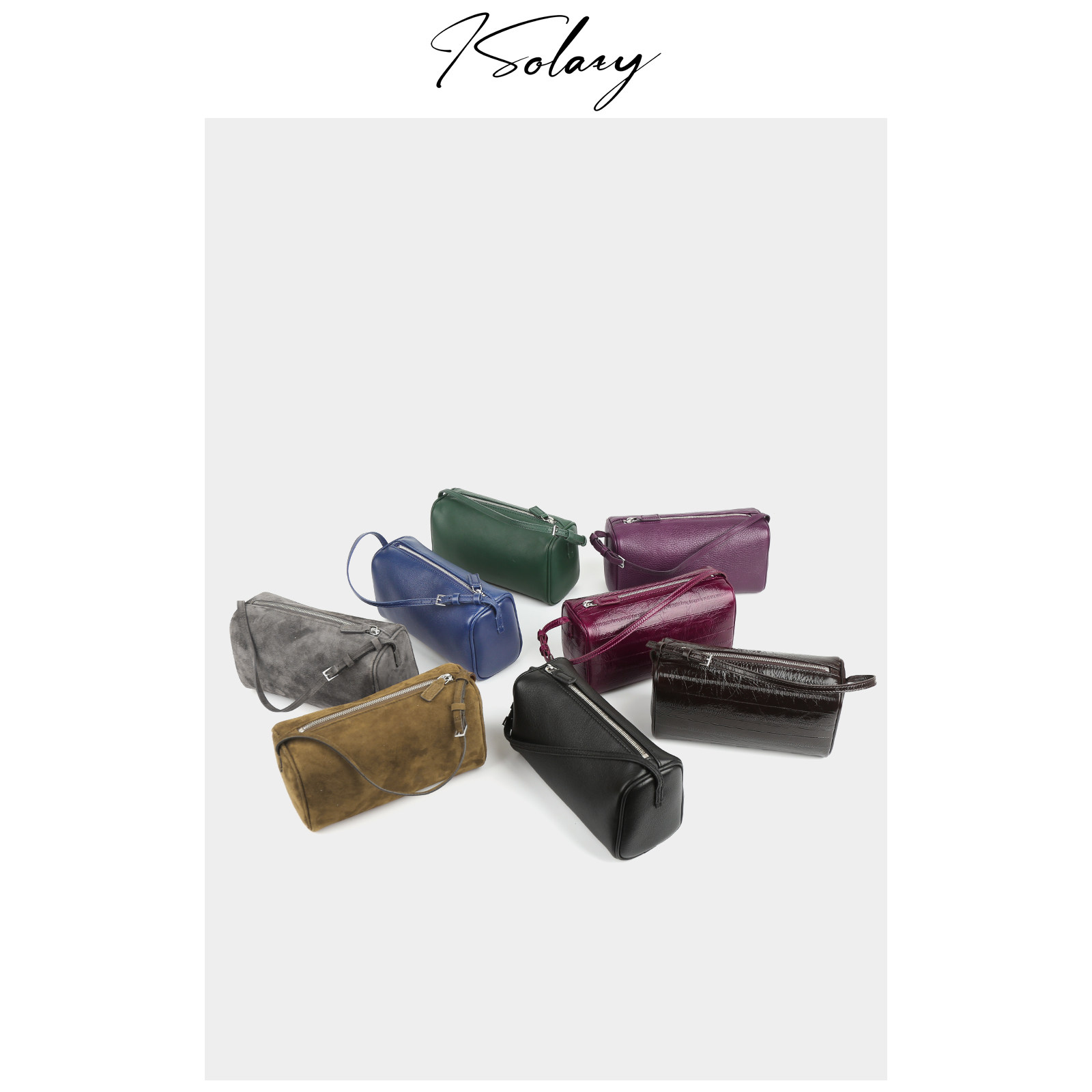 Isolazy/ "90S Pen Holder" Imported Original Leather and Steel Hardware Pencil Case, Portable, Crossbody, Simple and High-End Feel