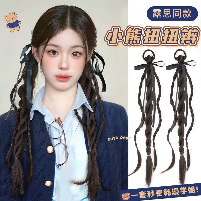 Wig Braid Bear Twist Braid Wig Braid Preppy Style Double Twist Ribbon Artificial Ballet Hair Wig Ponytail